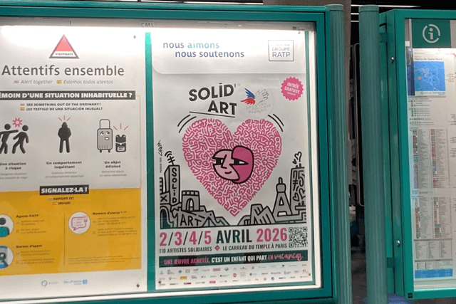 Du 2 au 5 avril 2026, le Secours populaire français a réuni plus de 100 artistes contemporains au Carreau du Temple pour la 5e édition de Solid'Art Paris, son salon d'art solidaire à Paris.