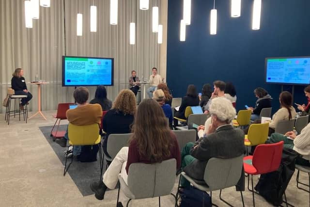 L’Afterwork a démarré par une intervention de Solène Jourdain, Responsable du FSE+ (Fonds Social Européen, dédié au financement de l’ESS en France) à l’Avise, qui a présenté les différentes offres de financements européens et la méthodologie pour se lancer dans une première sollicitation.